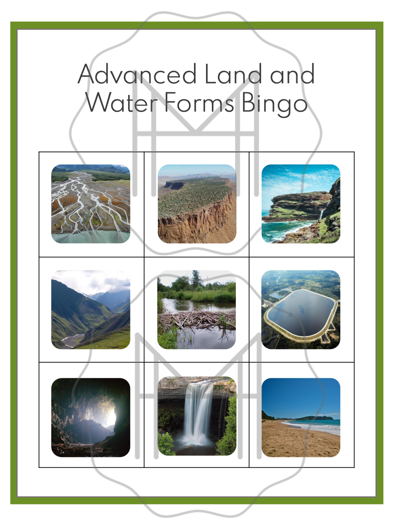 Pg. 17: Advanced Land and Water Forms Bingo Clues