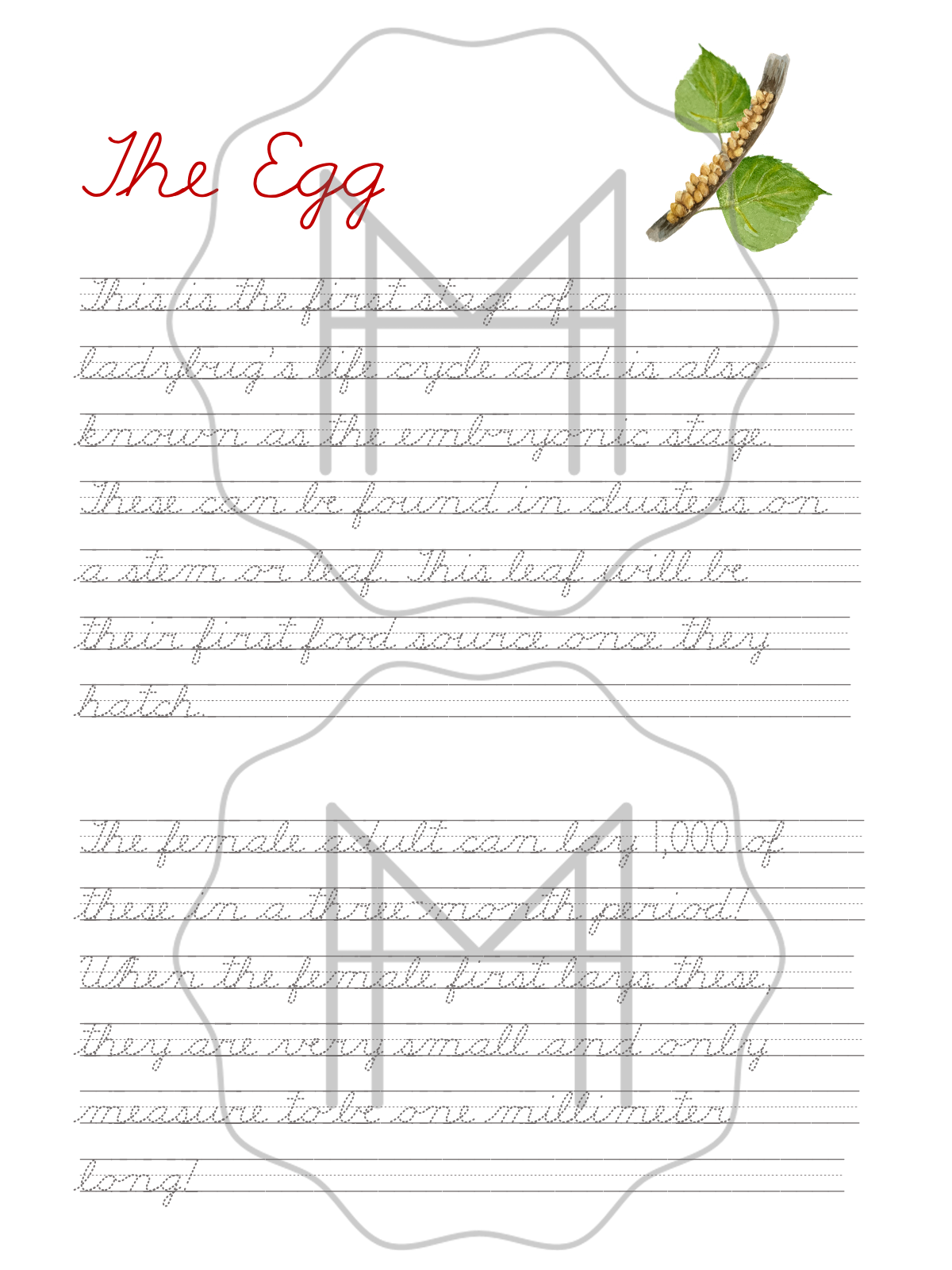 Pg. 8-11: Ladybug Cursive Handwriting Practice