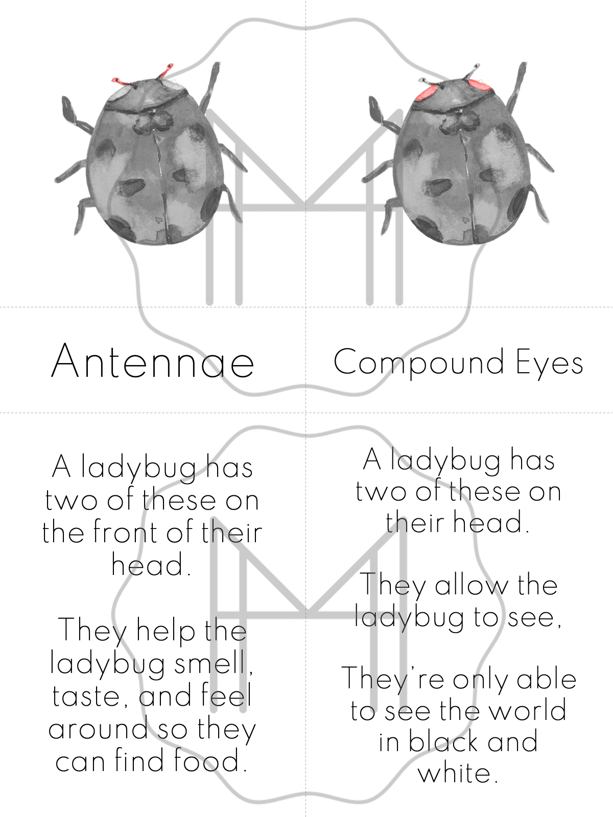 Pg. 12-18 The Parts of the Ladybug 3-Part Cards
