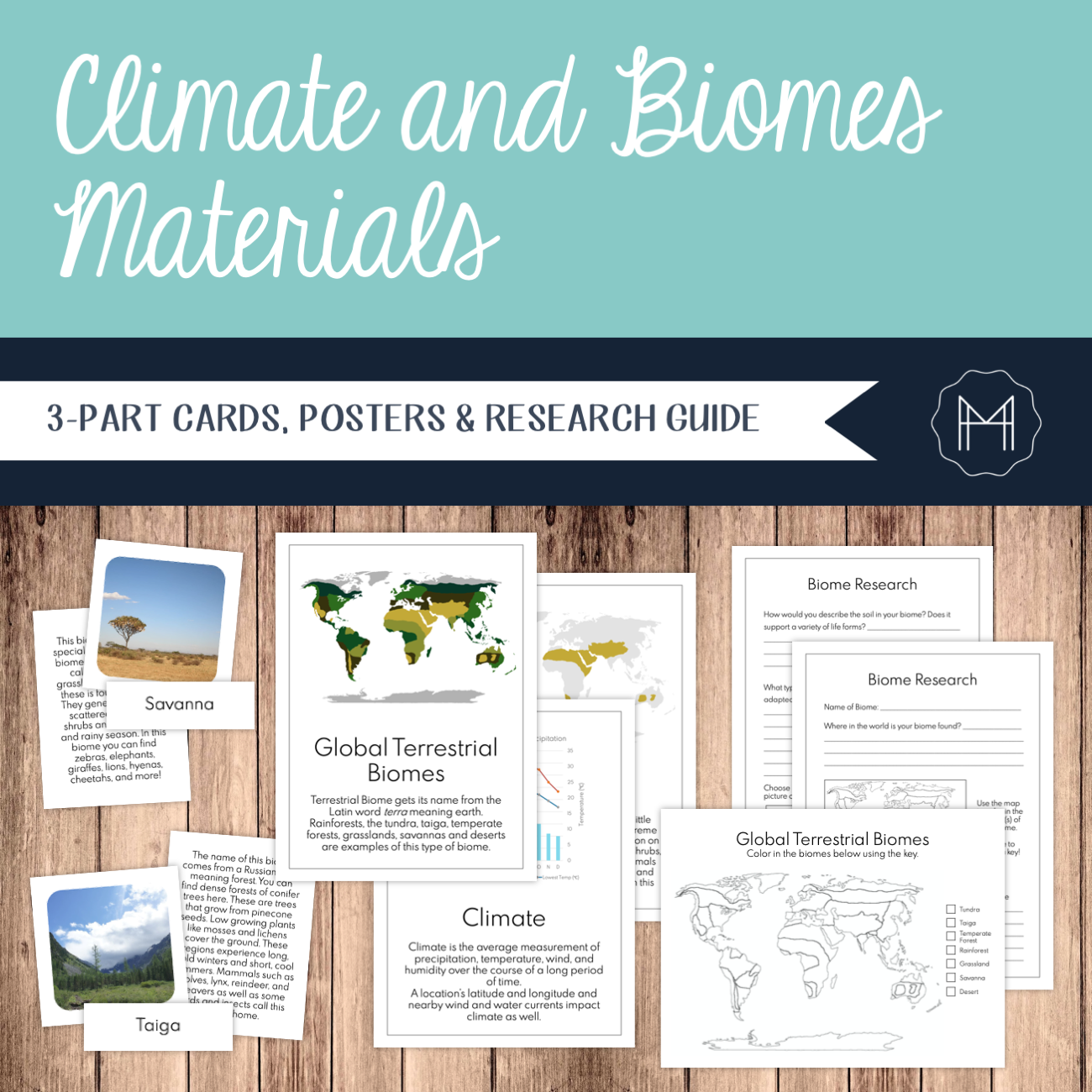 Climate and Biome 3-Part Cards, Posters, and Research Guide