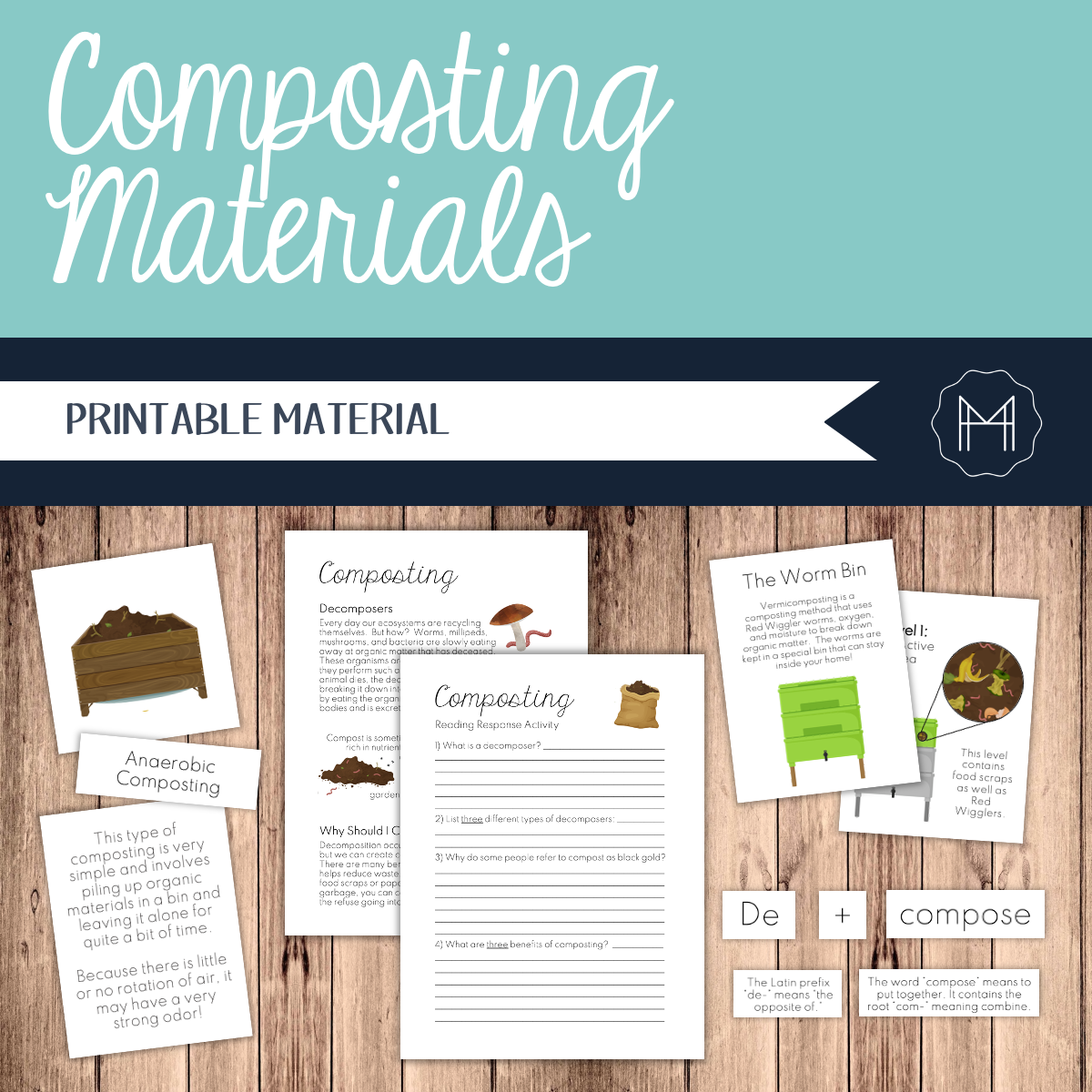 Composting Informational Pack: Reading Passage, Sequence Sorts, and 3-Part Cards