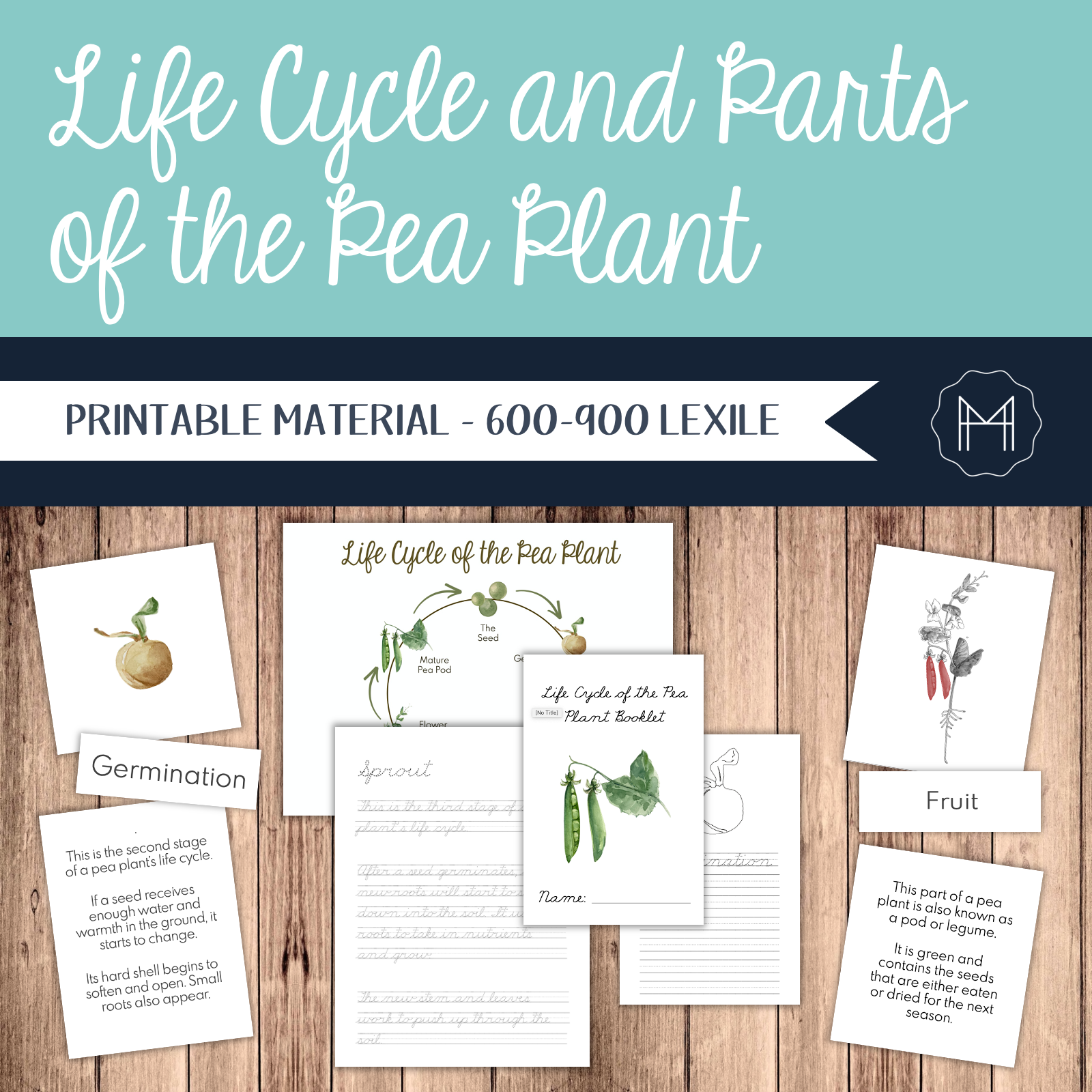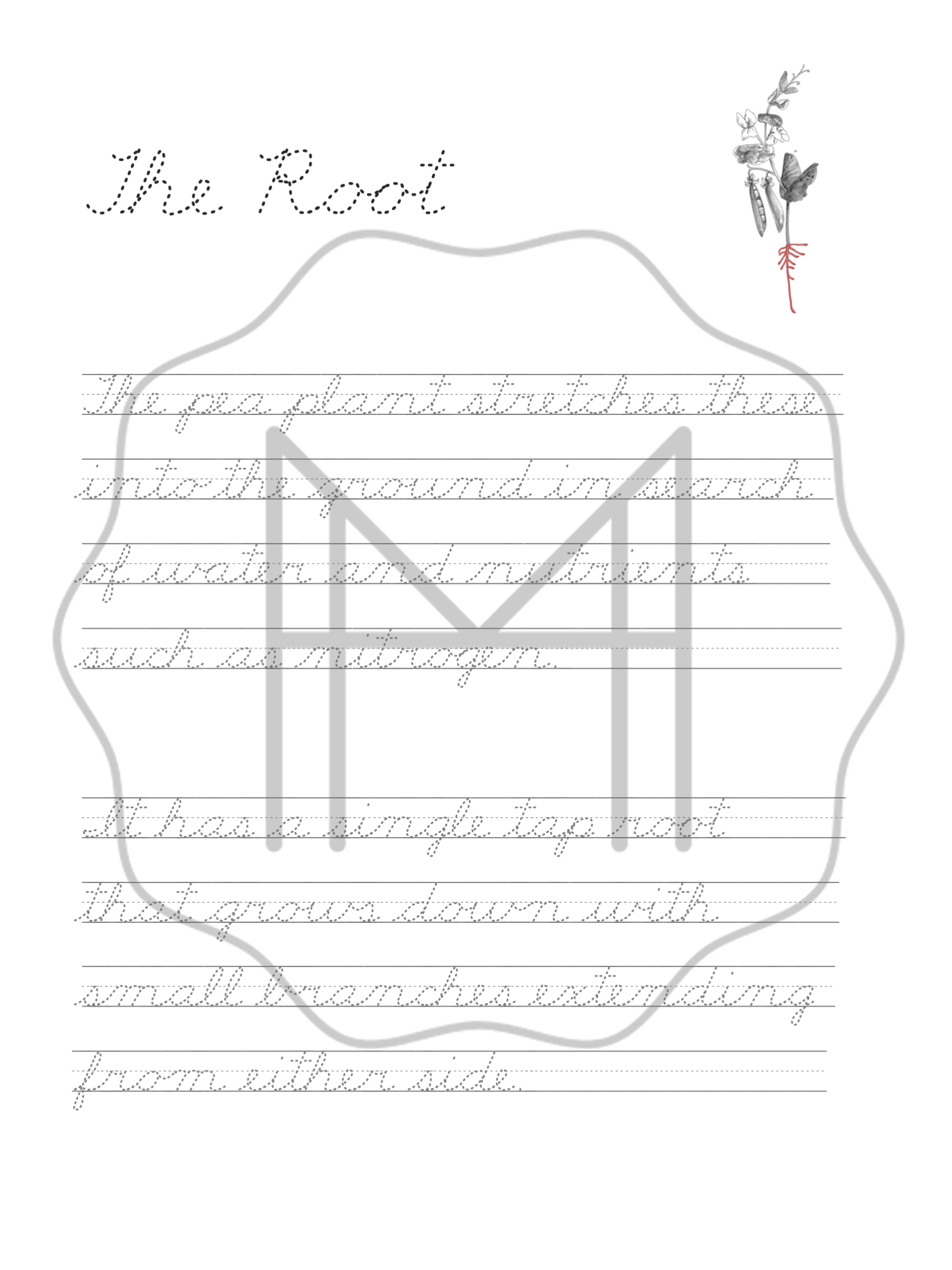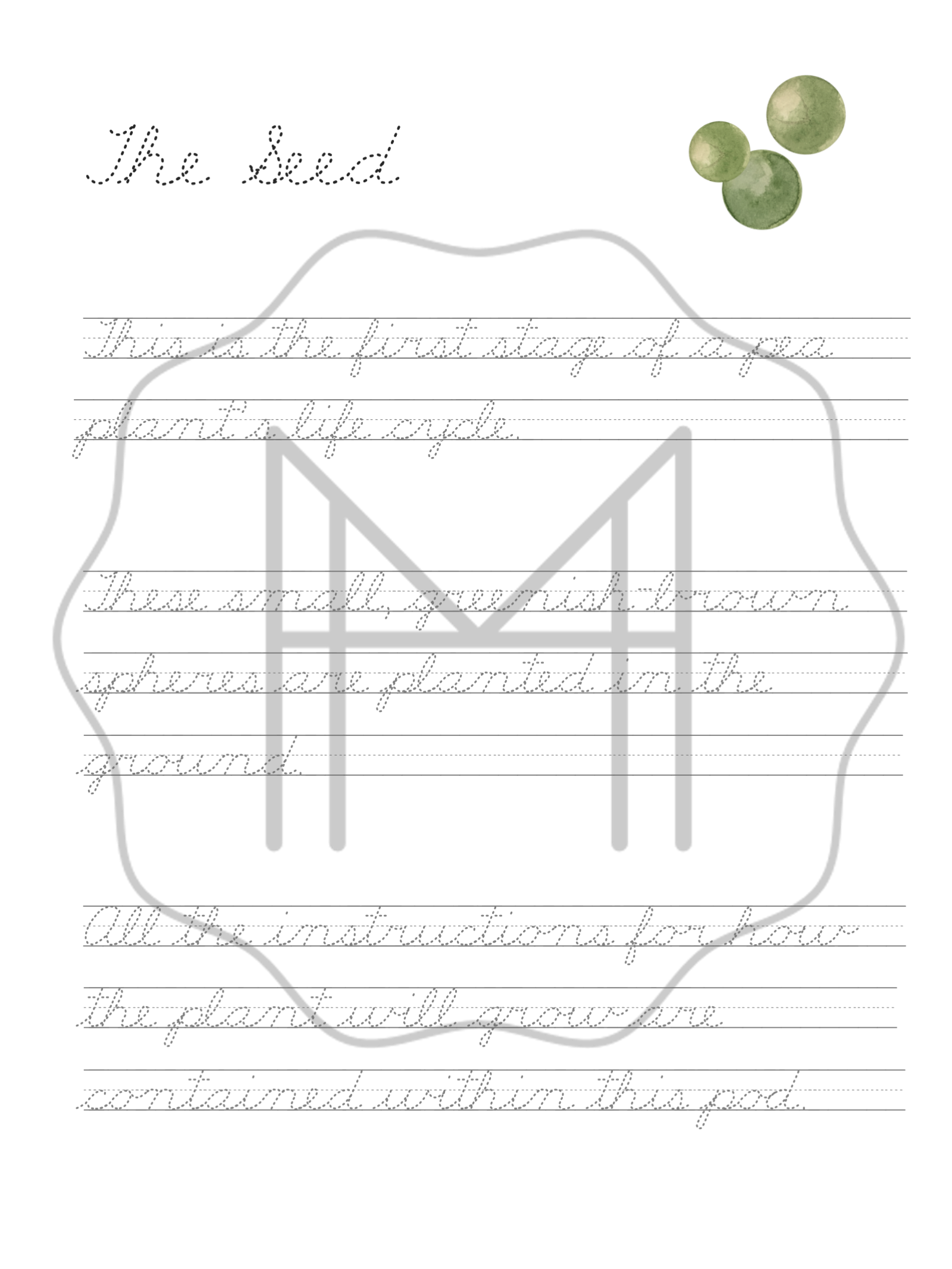 Pgs. 14-19: Life Cycle of the Pea Plant Cursive Handwriting Practice
