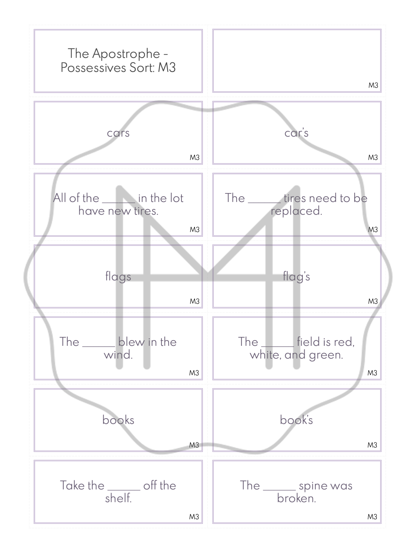 This pack contains introductory lessons pertaining to the apostrophe as well as sorts and task cards that will challenge students to apply what they've learned.