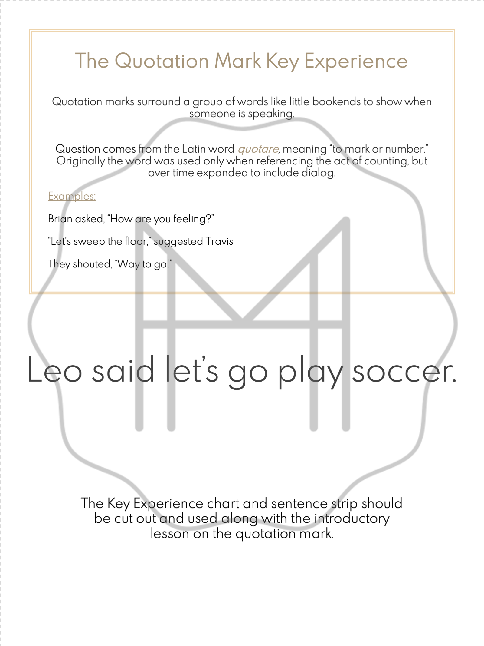 This pack contains introductory lessons pertaining to quotation marks as well as sorts that will challenge students to apply what they've learned.