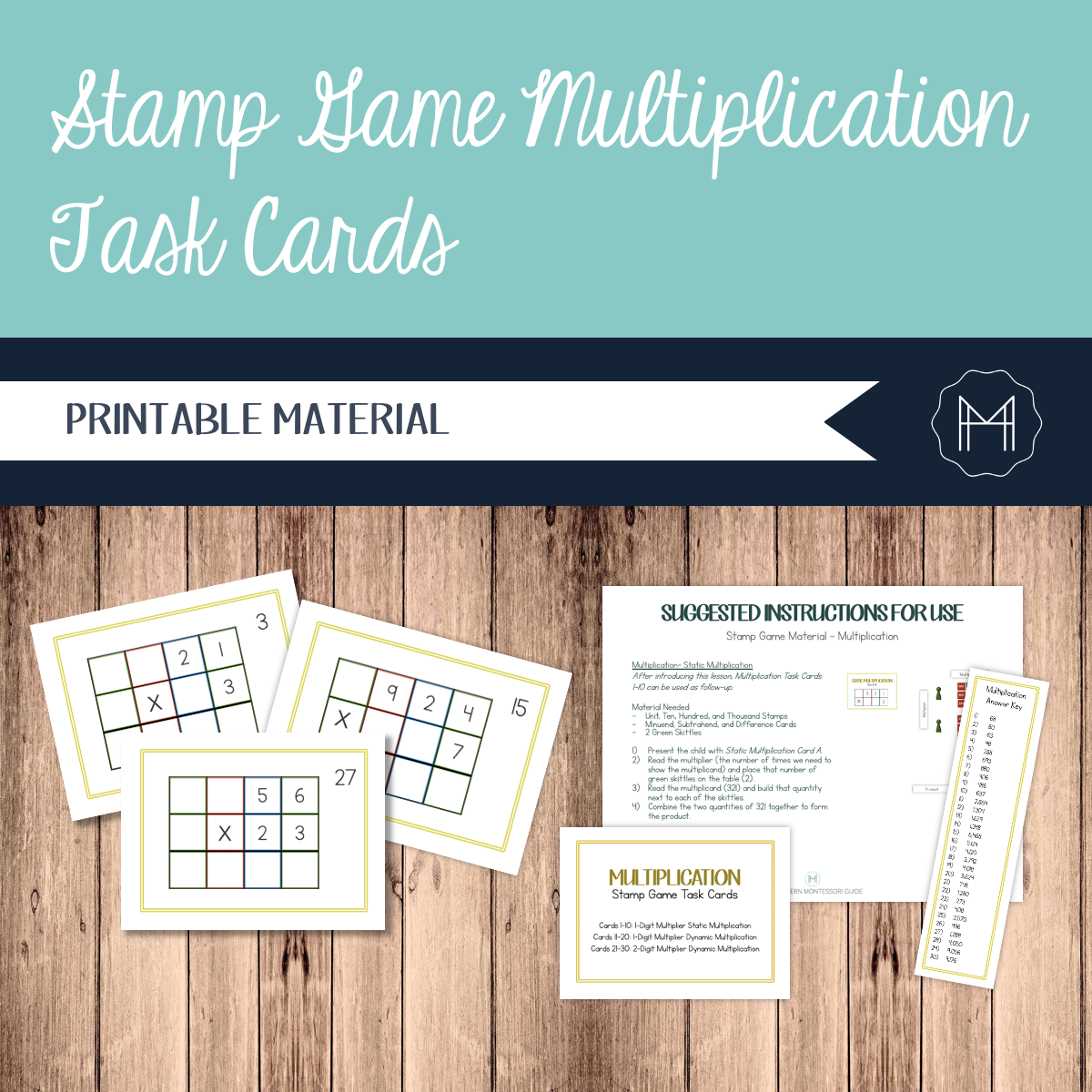 - Pg. 2-4: Stamp Game Multiplication Lesson Suggestions and Example Cards