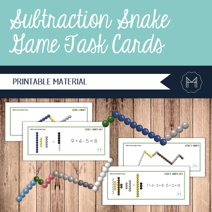 These cards are made to be used as a follow-up to Subtraction Snake Game lessons. The direct aim of this work is to guide the child as they internalize subtraction facts.
