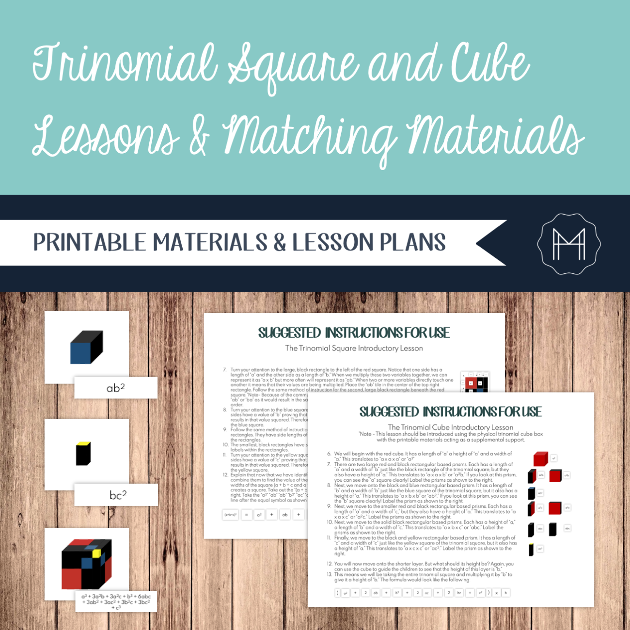Trinomial Square and Cube Lessons and Matching Materials