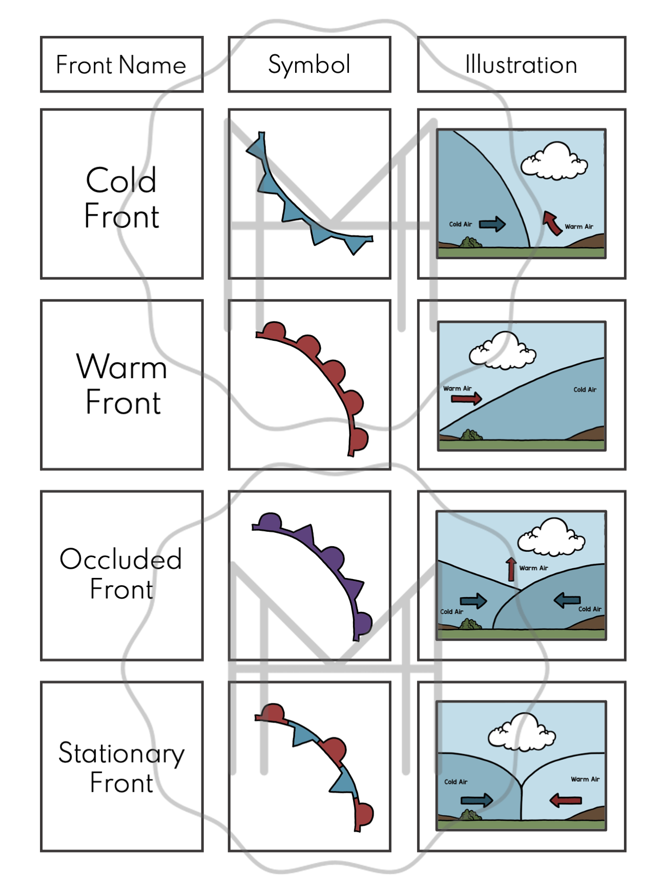 Pgs. 2-3: Weather Fronts 3-Part Cards