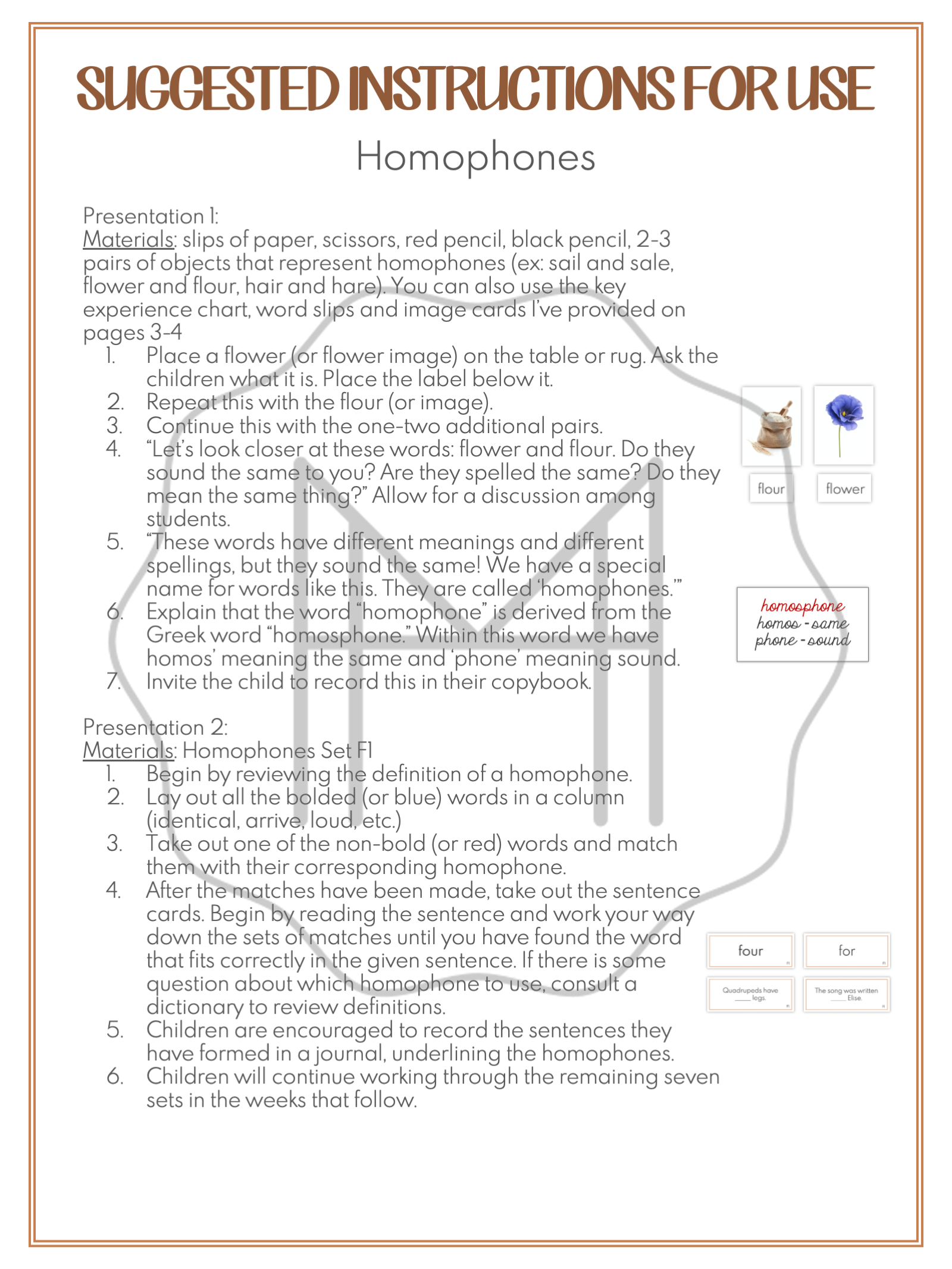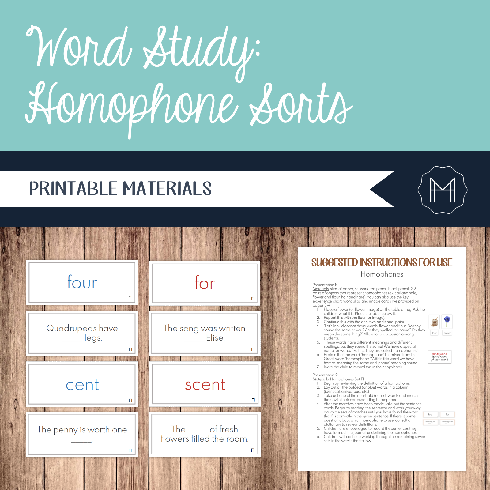 The direct aim of the homophones word study is to help children understand that homophones are words with the same pronunciation but have different meanings and spellings and to help expand and enrich the child’s vocabulary.